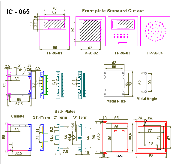 | FP-96-01,02,03 | Front Plate With Display Cut out Type – 01,02,03 | ||||||